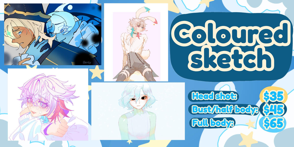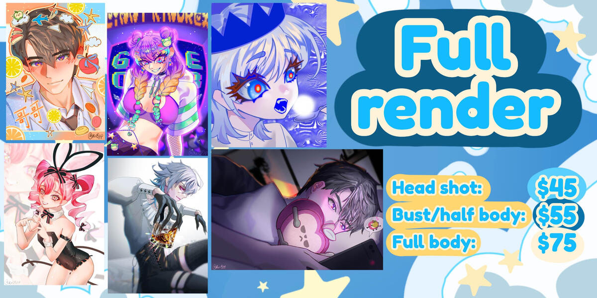 Alternatively, find me on Vgen for more options!All prices stated are an estimation, please contact me for a more accurate quotation :DEach additional character: 80% additional charge on the final priceBackgrounds and background designs are subject to charges depending on complexitySimple backgrounds (flat colour, simple patterns) are free!International payments are to be made via PayPal in usd. Local payments, please contact me.Commissioned works are for personal use only! For commercial use (selling prints, patreon rewards etc.), please contact meIf I find out that a client has used/is supportive of any form of ai art, I will terminate the transaction with no refund, regardless of the commission progress.I reserve the rights to: